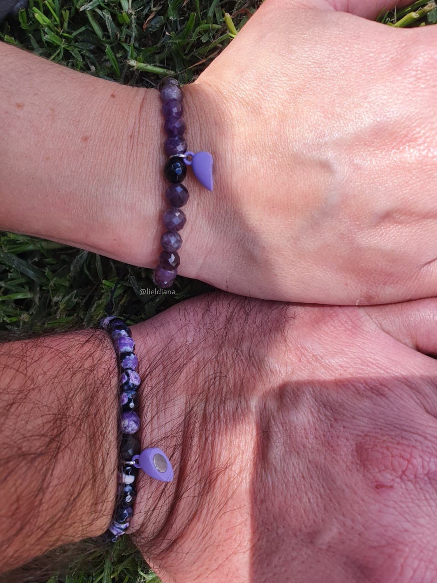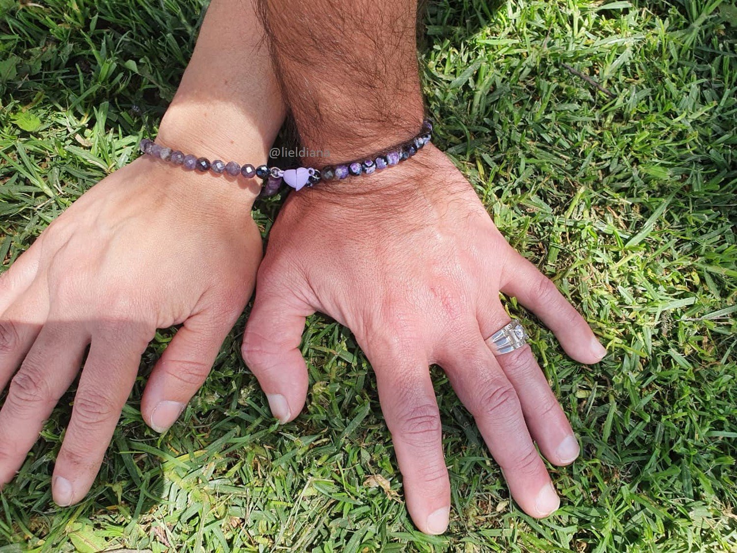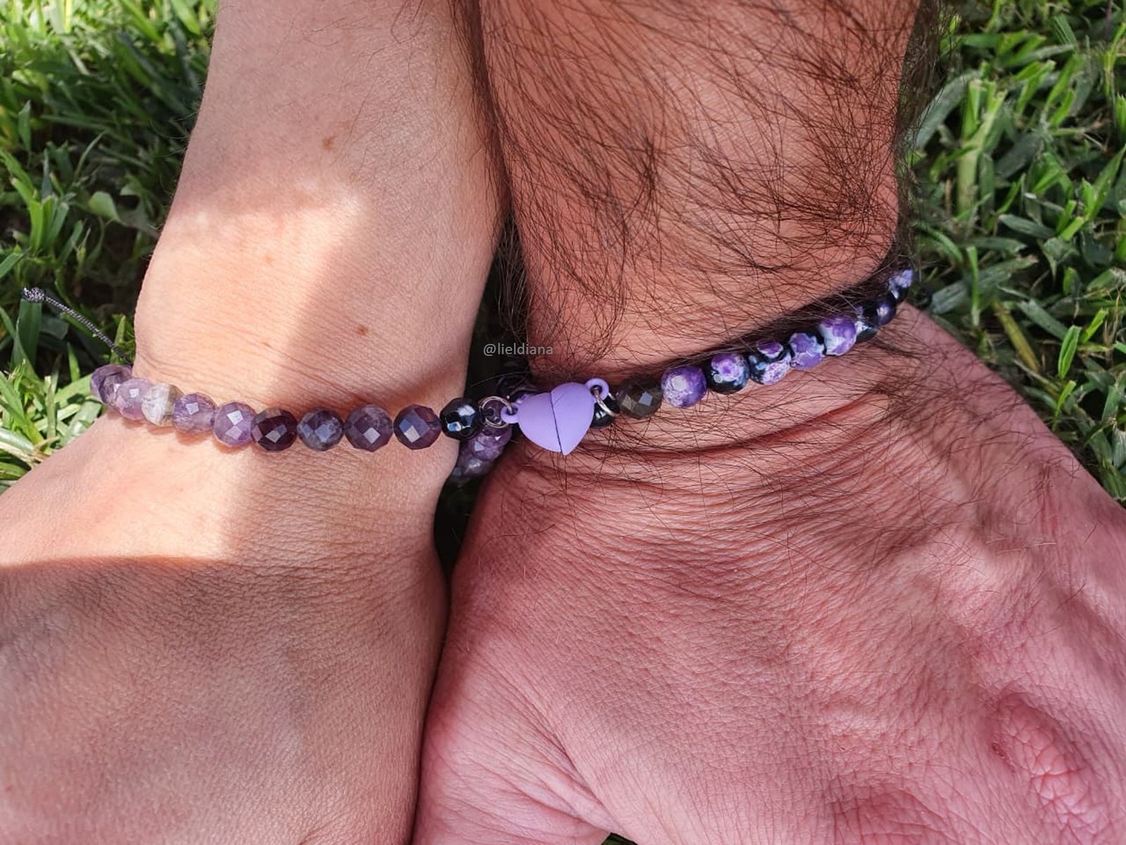 • Amatista (Pulsera 1): Aporta paz, transmutación y una conexión espiritual elevada. Es la piedra que calma la mente y protege el vínculo.