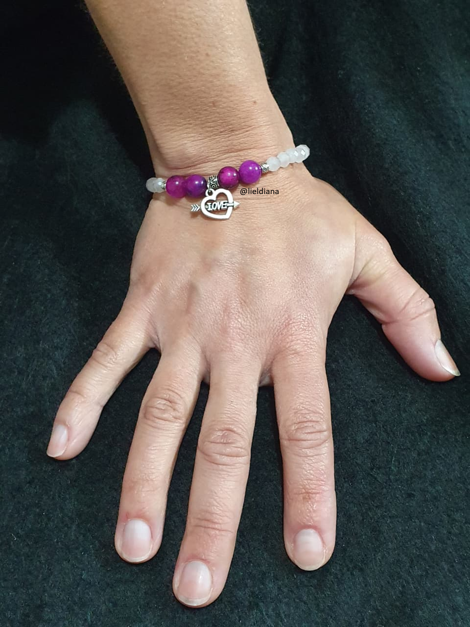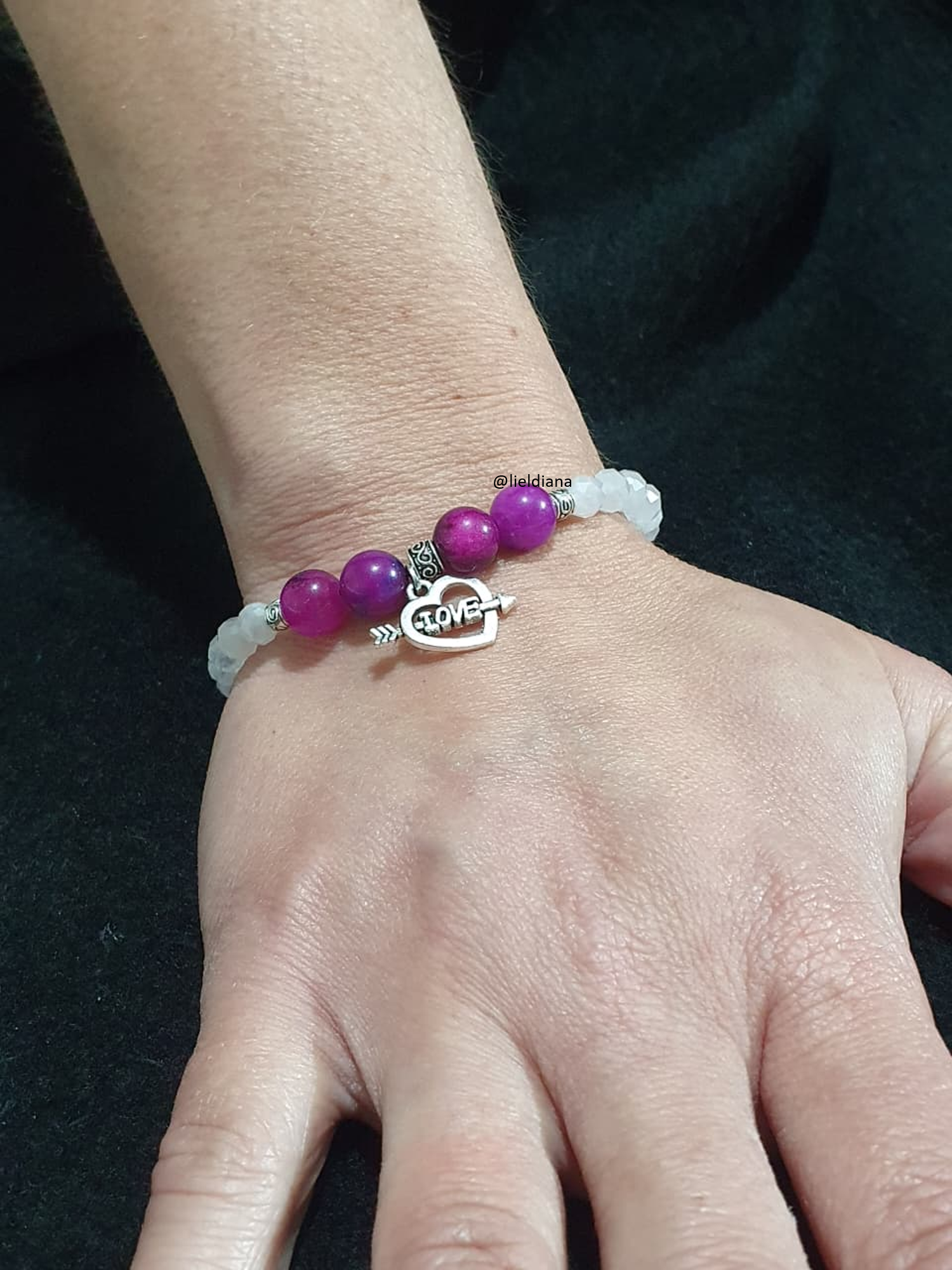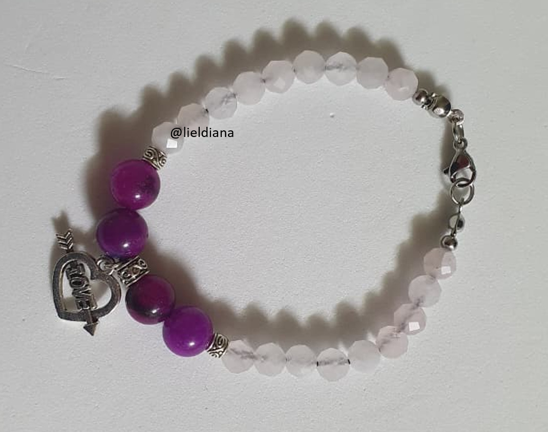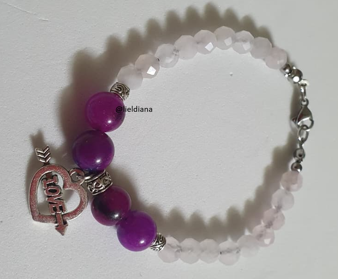Esta pulsera artesanal combina la suavidad del Cuarzo Rosa con la sofisticación del Ágata Morada, creando una joya que no solo embellece, sino que también actúa como un recordatorio constante del poder del amor en todas sus formas.